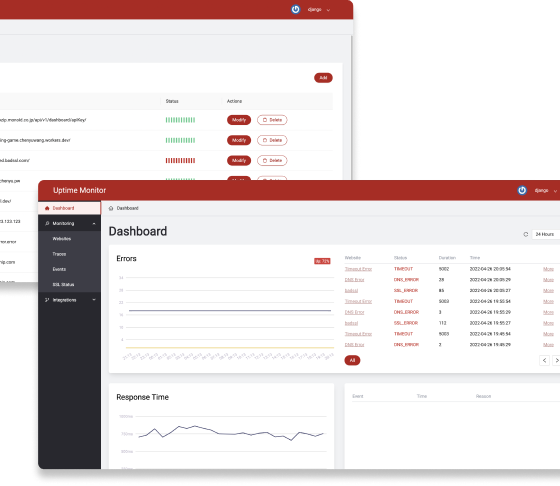 Uptime Monitor is a website monitoring service to acknowledge users when their endpoints go down. Users can configure the monitoring setting site by site, and get informed by both email and visualized real-time dashboard.
